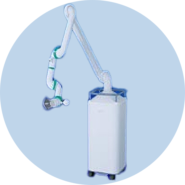 歯科治療では、エアロゾルと呼ばれる空気中を浮遊する細かな粒子が、治療の際に飛散することによって院内感染のリスクが高くなります。当院では、汚染されたエアロゾルの飛散を防止するために、口腔外バキュームを導入しています。